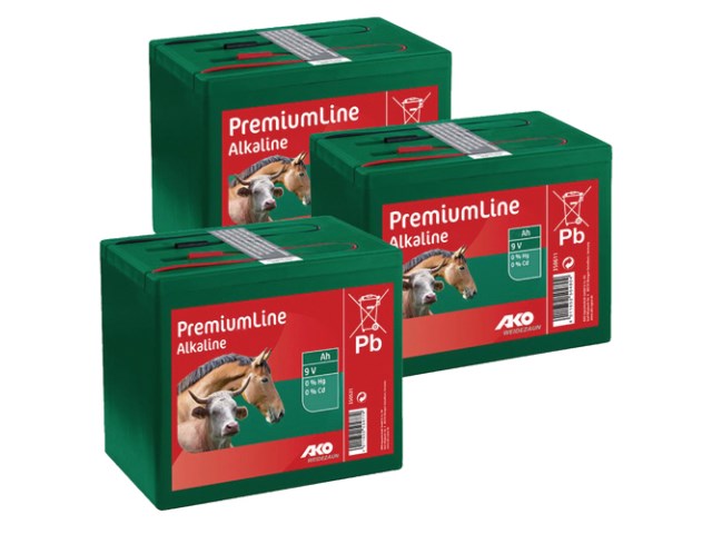 9 volt alkaline batteries produce a constant high voltage output throughout their entire lifetime. The fence device therefore also emits a constant output during this time.